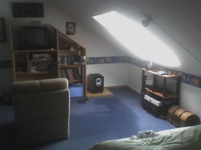 La on peut voir mon lit et mon coin buro ou je travaille serieusement mes devoir et apprend mes lecon tt les soir comme 1 gentil petit eleve model.bon dans le lit je ne dit pas ce ke je fait a part dormir...bref c tt mon petit confort.